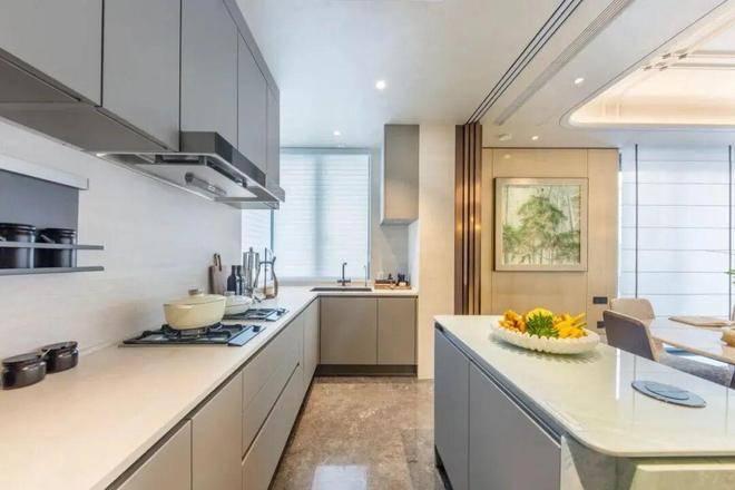 210㎡户型作为进阶改善标杆,装修标准尽显高端质感。厨房标配嘉格纳四件套,满足高端烹饪与宴请需求;橱柜选用进口柏丽品牌;主卧卫浴空间选用杜拉维特洁具与高仪五金,并配置双台盆、独立浴缸与淋浴区;地面采用天然奢石拼花,墙面局部搭配艺术漆与软包处理,兼顾实用性与奢适。
