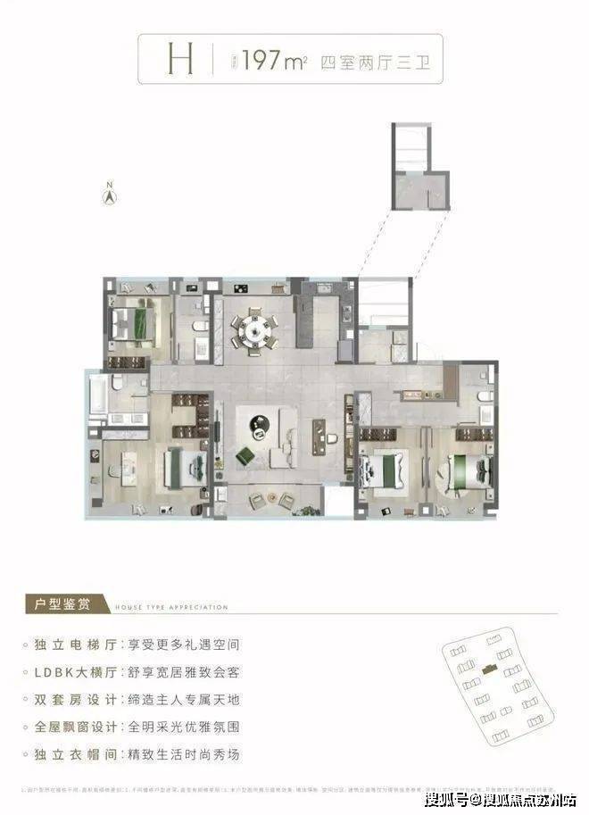 以一轴一带多境的格局,打造迎宾客厅、仪式水景、景观连廊、艺术水苑、森氧绿境、精装大堂六重归家礼序。