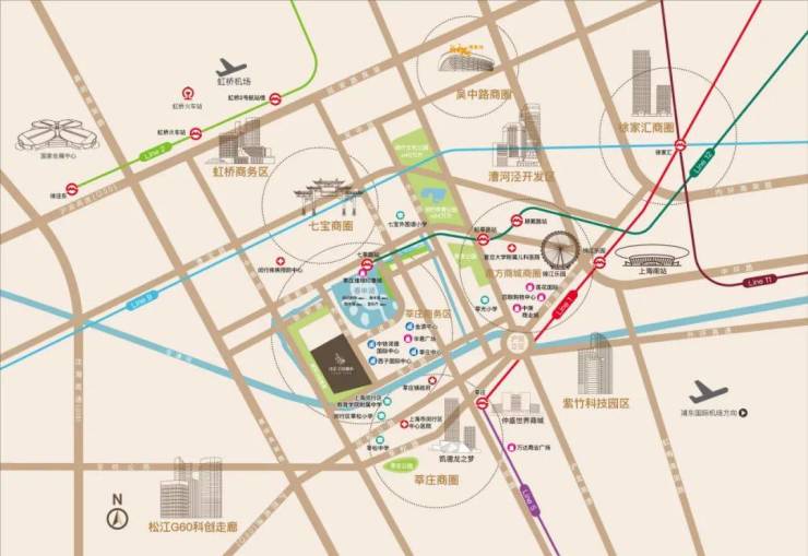 莘庄作为上海2035规划的四个副中心之一,东北方背靠漕河泾开发区、西北紧邻大虹桥主城区、西南接壤松江工业区和G60科创走廊、南部连通莘庄工业区、闵行工业区、紫竹高新区······地理位置得天独厚!