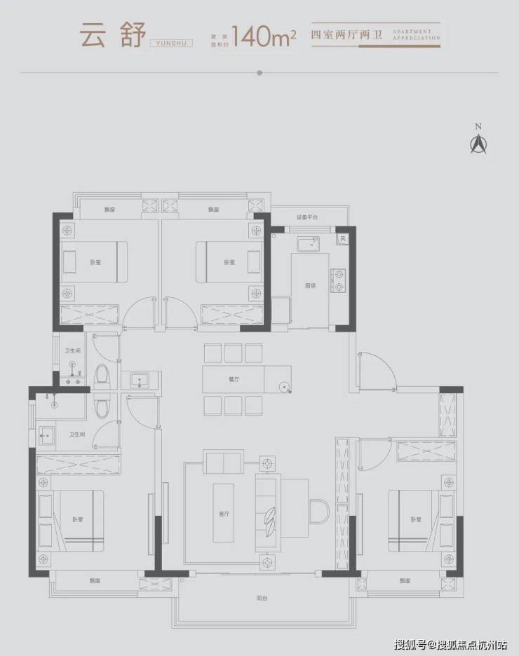 方正格局:全明阔绰四室、约13.4M南向四开间,打造尊荣生活格局
