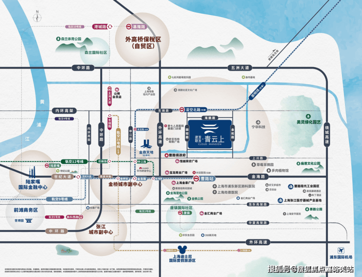 来业主从凌空北路站出发,2站即可到达申江路站,换乘12号线;3站即可到达金吉路站,换乘9号线;而12号线和9号线都是串联金桥、陆家嘴、徐家汇、北外滩等上海高能级商圈的黄金线,三轨交护航,正是当下浦东不可多得优质轨交神盘。
