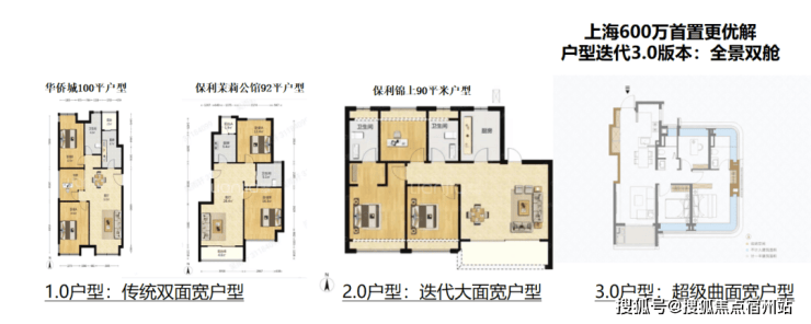 1.0时代,百平户型以传统双面宽户型为主,采光欠佳;