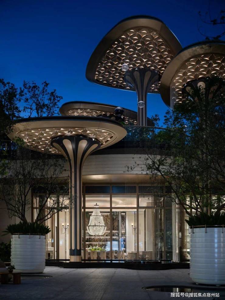首先项目的入口是真的惊艳,门头顶部的500多片镂空透光铝板雕花花瓣,皆由项目LOGO精琢演化而来。这是3000万重金雕琢的细节,更是对品质的无声承诺。