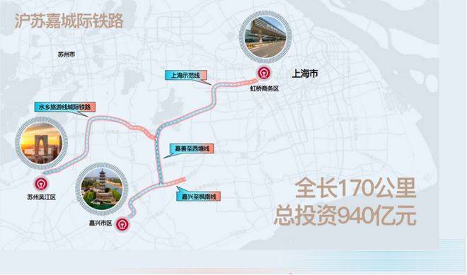 当然映辰周边还有一个高能级铁路——沪苏嘉城际铁路,上海境内的上海示范区线串联虹桥国际枢纽、青浦新城、华为研发基地、长三角演艺中心、美的全球创新园区、西虹桥科创中心、安踏全球零售总部等多个产业高地,以后从大名城映辰出发,刷公交卡坐城际铁路就可以去沿线的名企上班了。