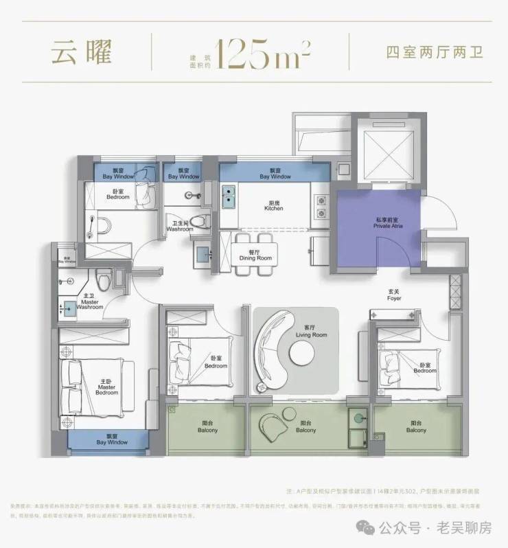 尺度感上:这是新政后松江板块首个四开间朝南、且不封阳台的三阳台户型。
