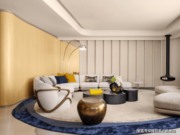 吊顶的优雅曲线与地面线条遥相呼应,营造出从室内到室外的流畅过渡,成就空间的层次美学与视觉延展。