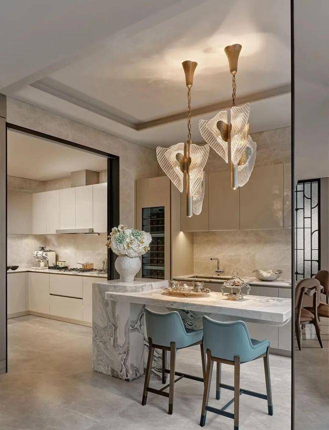 当Art Deco几何纹样与海派花砖暗纹悄然呼应,空间便完成了对新旧共生的又一诠释:所有物质都在克制表达中,回归生活本真的呼吸节奏。
