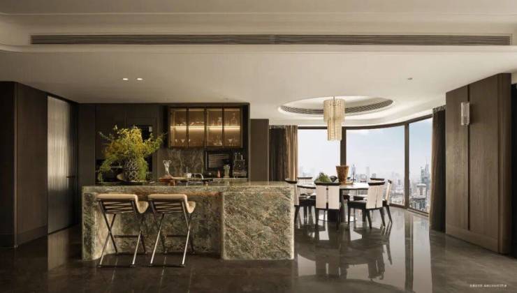 一方面尺度感与功能性完美平衡:动辄三百平以上的大平层,并未盲目追求房间数量,科学分配空间,主卧套房、客厅、餐厅等核心功能的尺度极度奢阔,营造出强大的空间气场。