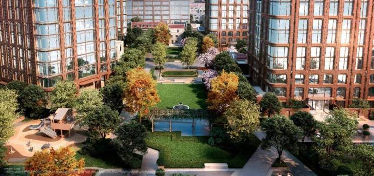 整体围合式的布局,摒弃了传统高密度社区的压迫感,以匠心打造出阔绰的中央景观花园,这在寸土寸金的上海黄浦区,堪称不可多得的稀缺存在。