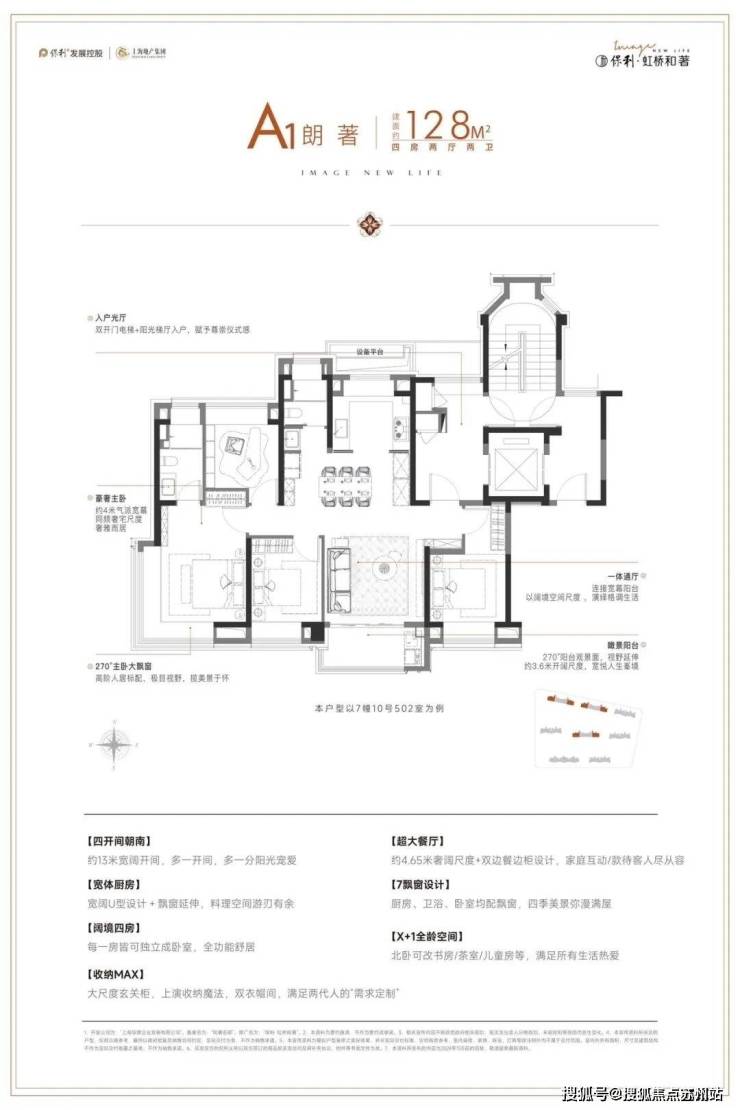 南向四大开间,精心铺排阔绰人生;X+1全龄空间,让家人各有其室,其乐融融;全屋7飘窗设计,赋予生活更多场景;主卧套房尊配衣帽间,时尚华服尽心收纳。