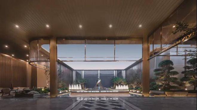 入口处酒店港湾式落客空间,艺术感造型树,蓝翡翠奢石达到第一眼的惊艳;内部精致典藏的水院空间,以雕塑、喷泉水幕、造型树经典组合,打造全区景观点,更大地扩充与景观的接触面,度假的松弛感油然而生。