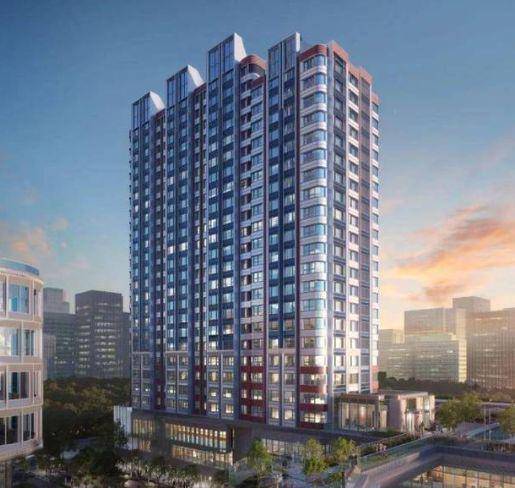 外立面方面,项目整体将打造为新海派建筑地标,设计有弧线阳台、45度玻璃、双层塔冠等,设计灵感来源于蔓楼兰;立面色调方面,将采用珐琅彩色调,具体或为珍珠蓝铝板+红色纹理+金色线条,具体材料及配色还在最终确认。