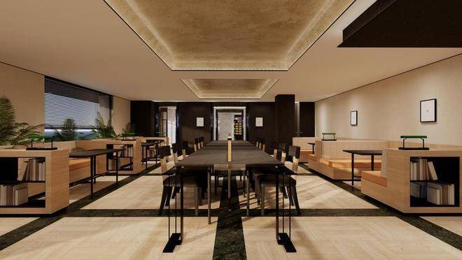 二楼通过专业餐酒吧设备、艺术光厅、上海首个度假感植物园泳池等营造艺术感会所。并围绕女性业主的需求打造女性友好健身房,专属设计了适配女性的器械,例如 Eleiko 多功能架、瑜伽室、补妆间等,并配置了健康管理服务。