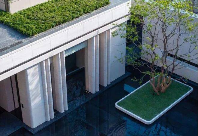 这种一般只存在于公园里的景观设计,这一次,招商将其挪入了私家园林。配合门外梧桐掩映,老静安的调性,跃然纸上。