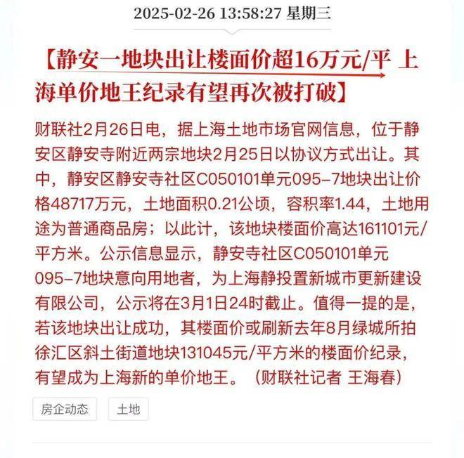 早在2025年2月底,“静安新地王”就成为市场焦点。