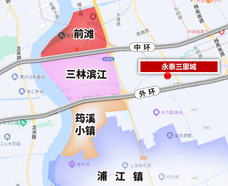 永泰三里城位于浦东中外环间,拥有得天独厚的地理优势!临近前滩和三林滨江两大热门板块,并可同时共享这2大重板块的高能级配套,占据规划优势。