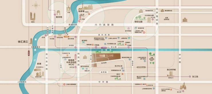 开云艾尚里位于内中环,北蔡艾南小区、六里嘉园的北侧,隔川杨河与大华锦绣大城相望,同时离浦发仁恒北蔡源很近。