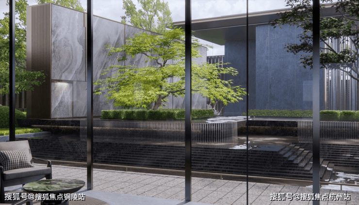 第五重:下沉庭院打造一体式景观,墙面流水至地面,结合水中花池营造出纯粹的自然之境。