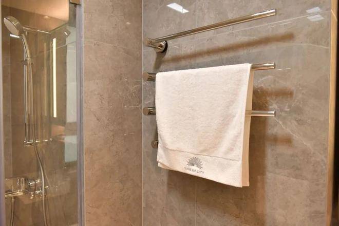 最后值得一提的是,项目还有很多个性化定制设计,包括防雾镜、美颜灯、电热毛巾架、岛台轨道插座(约93㎡户型)、预留美妆冰箱等。
