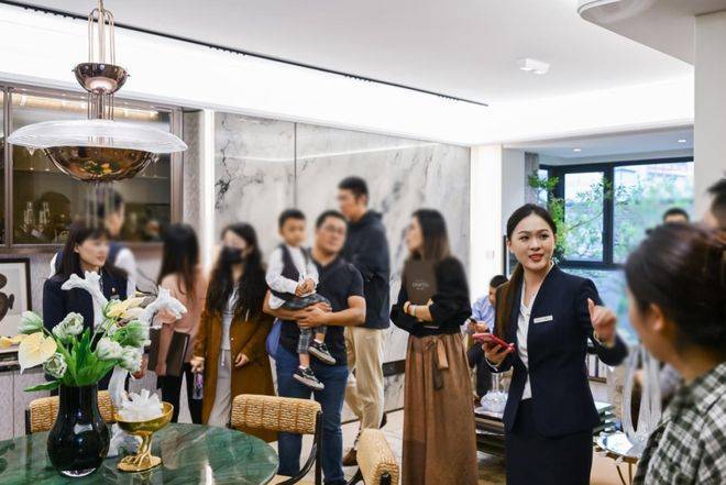 走过围挡艺术展,来到保利外滩序售楼处“滨江花园生活馆”,映入眼帘的是精奢的花园门庭、镜水景观、轩朗门厅,以及令人震撼的艺术布景,绚丽鲜花生长在每个角落,处处流露出滨江的水韵意向,与奢艺馥郁的花园氛围。众多购房者进入生活馆就被这种氛围感深深吸引!