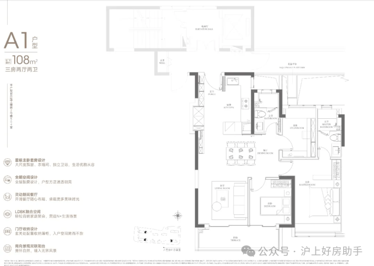 108㎡的入门级三房,起步门槛相比润府提高不少。