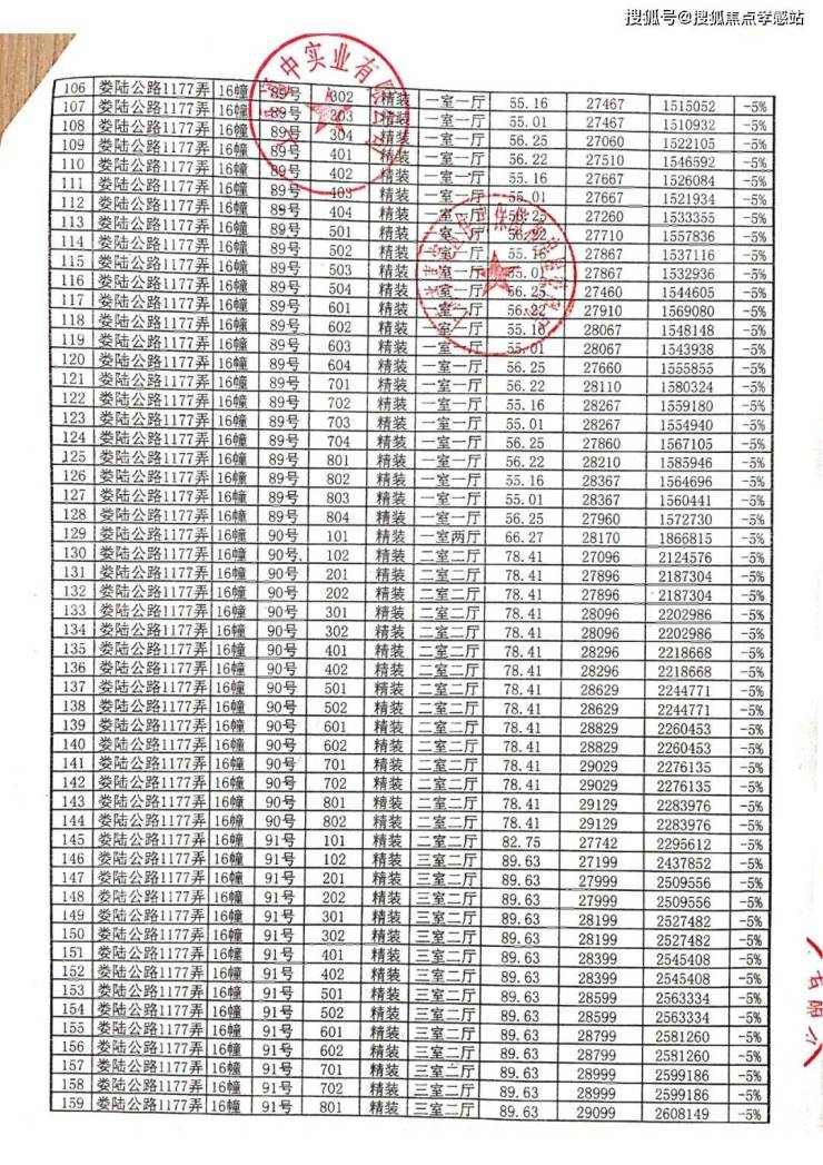 一房一价表: