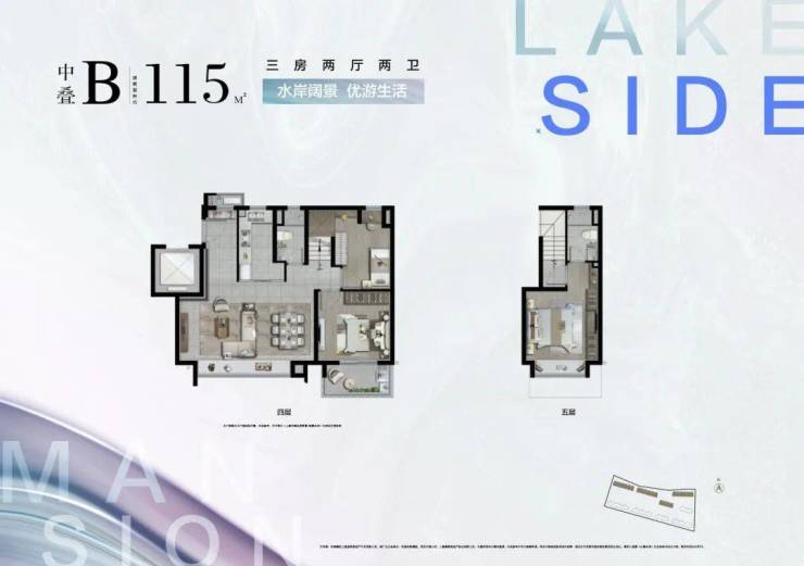 中叠B户型:建面约115㎡,三房两厅两卫
