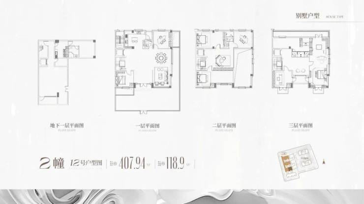 12套风貌别墅建筑面积约410m²---共5套(联排别墅)建筑面积约430m²- 450m²---共4套(双拼别墅)建筑面积约510m²-540m²---共3套(类独栋别墅)单价约24~32万元/m²,总价约1.08亿元起。