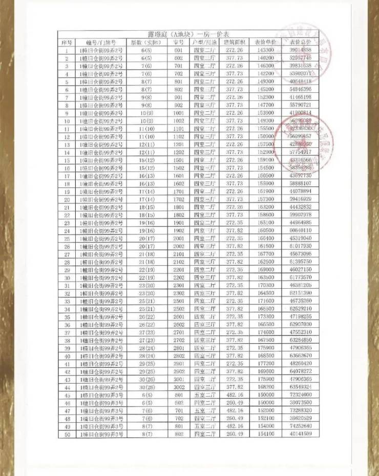 一房一价表