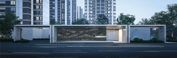 第一进:星级酒店的入户门头搭配入户水景,让入户更具仪式感、同时通过院内布景的遮挡,让小区内部景观增添一抹神秘感;