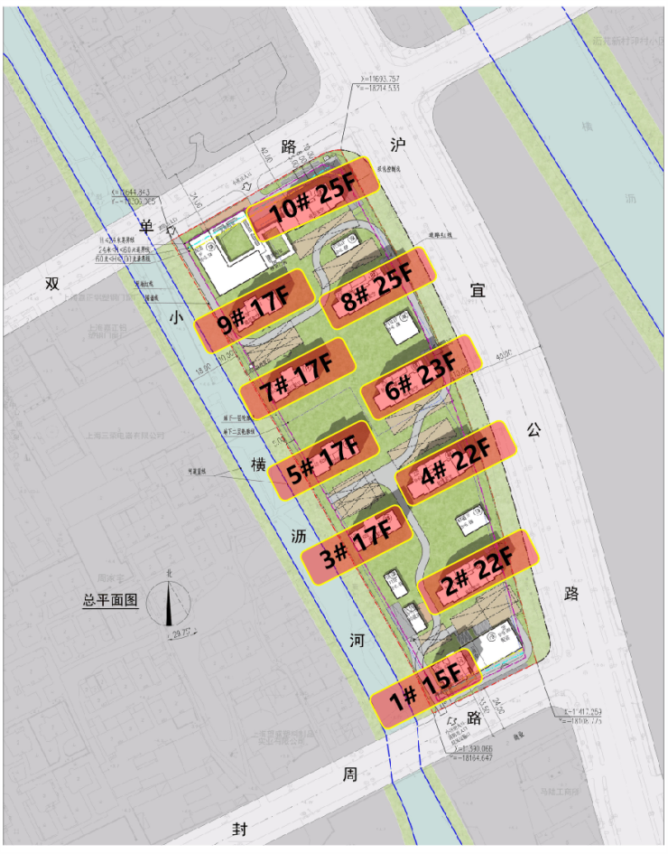 根据设计方案显示,项目拟建10幢15-25F的商品住宅和1幢公共配套,其中,17层住宅楼4栋,22层住宅楼2栋,23层住宅楼1栋,25层住宅楼2栋,15层住宅带裙房(公共配套)1栋,1层公共配套1栋。