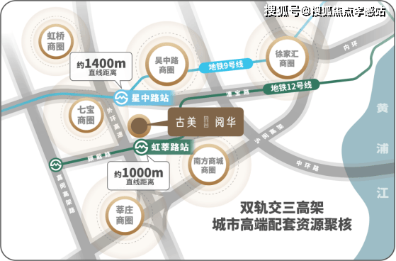 古美阅华距9号线星中路站直线距离约1.4KM,距离12号线虹莘路站直线距离约1KM,可直达漕河泾、徐汇滨江、南京西路、苏河湾、北外滩等核心区!且在嘉闵线(在建)通车后,可3站直达虹桥,7站到浦东机场。