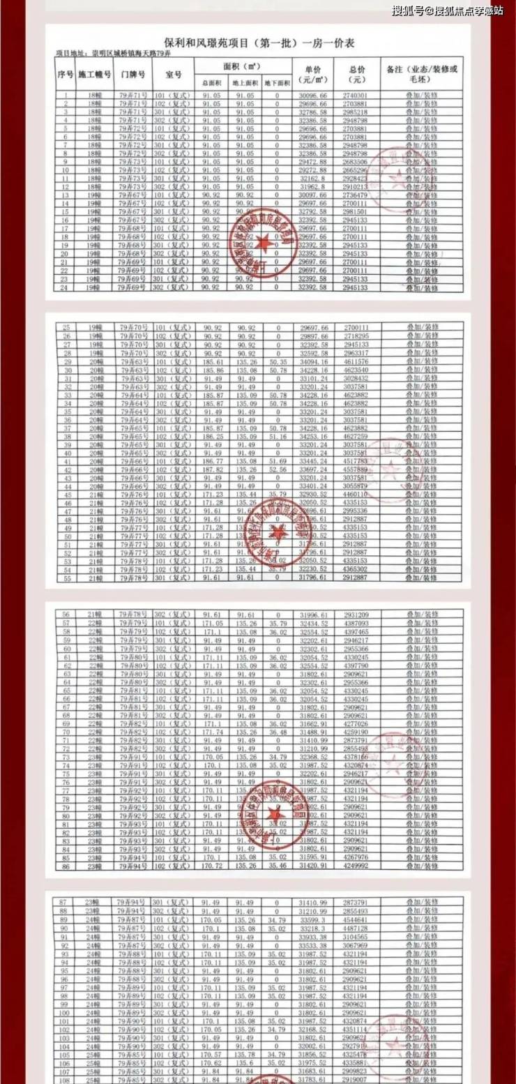 一房一价表: