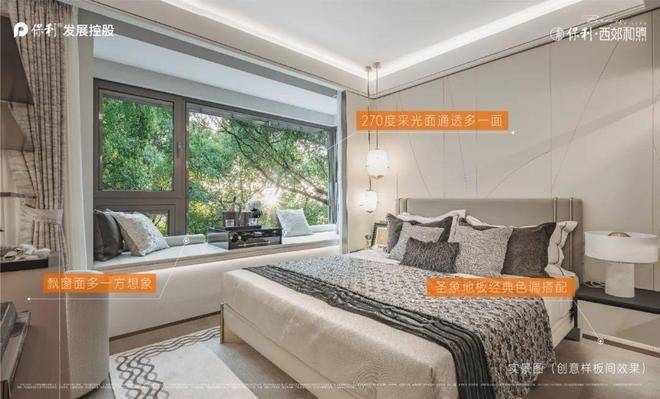 次卧实现270°L型飘窗,双向窗户采光,可以轻松拓展出书桌及收纳空间,尺度感非常不错。☑️☑️保利西郊和煦售楼处电话:400-8787-740☑️☑️