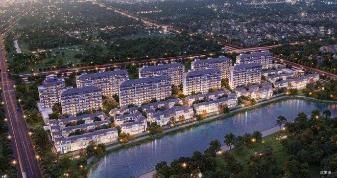项目容积率仅约1.5,由3层联排别墅+10层墅境平层组成,整体环河排布。