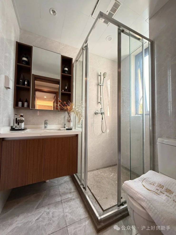 卫生间离连廊较远,私密性好,且开门不正对卧室门,另带飘窗。增加了实用性;