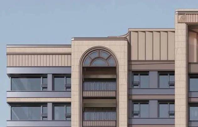 初览海阅首府三段式经典建筑立面,其浓郁的海派风情令人震撼,现代工艺与材料扎实而和谐相融。基座部分采用石材及铝板、不锈钢等高品质材料,主体立面以竖向线条为框架,搭配铝板,展现出端庄大气、典雅精致之美。