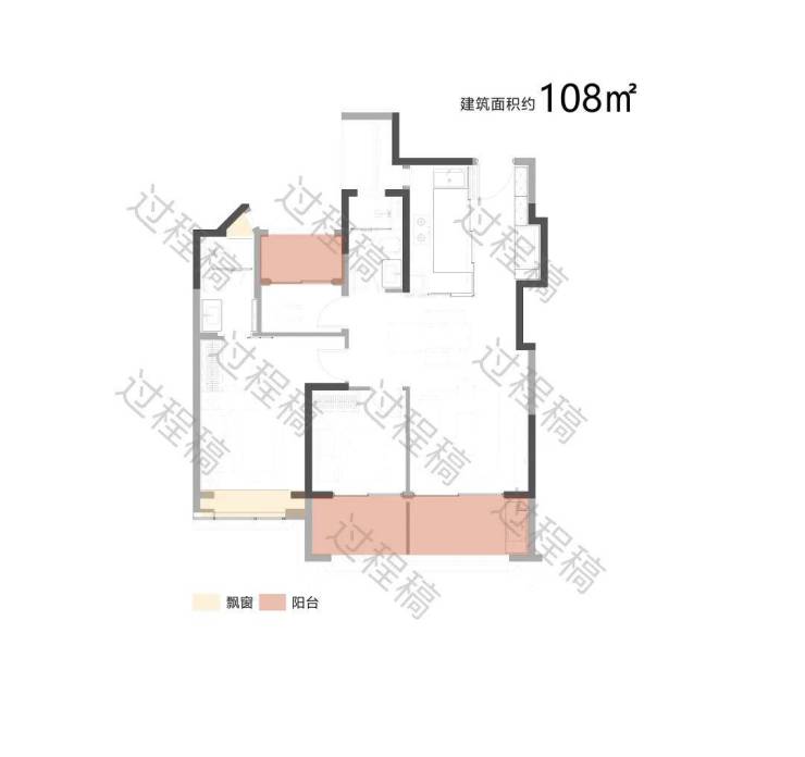 户型配备大面积飘窗(浅米色区域)和阳台(浅粉色区域),飘窗可引入柔和的自然光线,提升卧室等空间的明亮度;阳台则进一步拓展了采光面,同时有利于空气流通,保障室内通风效果,让空间更显通透舒适。
