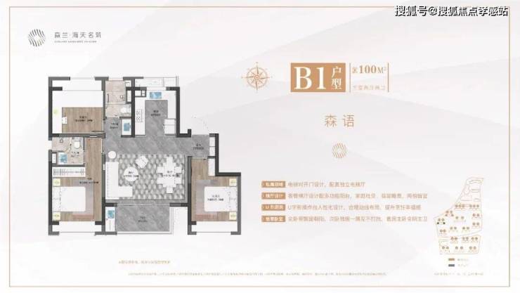 1、【森兰海天名筑】售楼处电话:400-885-5420✨✨建面约100㎡三房两厅两卫,市场主流户型。客餐横厅设计配多功能阳台,优势在于更大采光面和更好通风效果,把过道纳入到客厅和餐厅的空间中来,使整体空间得到更好的利用。