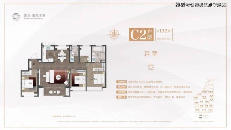 【森兰海天名筑】售楼处电话:400-885-5420✨✨约132㎡四室两厅两卫▼