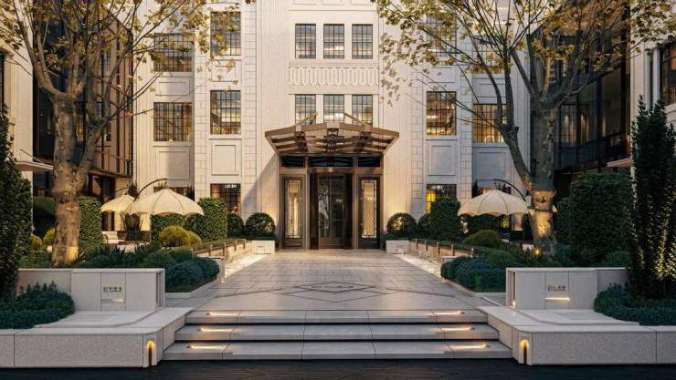 项目结合保留风貌建筑,以风貌庭院式设计,也是上海少见利用历史老建筑作为人行主入口的新房项目,增加历史韵味: