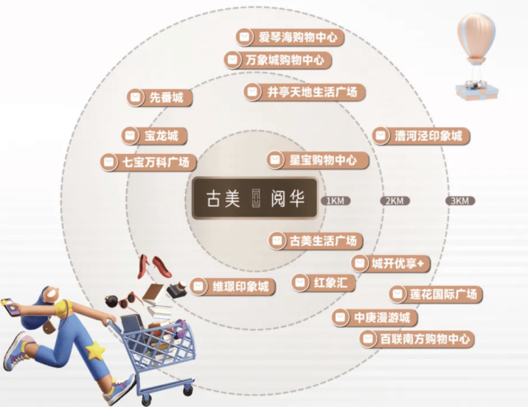 从地理位置上来说,古美作为漕河泾外溢的第一站,完全有实力承接住他们的置业需求。同时,它还被大虹桥、徐家汇、莘庄、七宝、漕河泾、春申等一众板块包围,是真正的围合之地。拥有来自全市的客群!