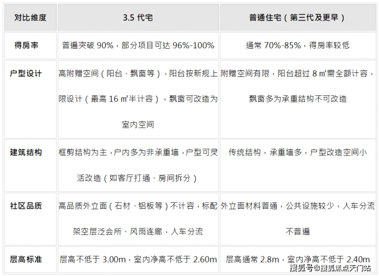 根据上海最新的住宅设计规范,3.5代宅是2025年新规实施后的新一代住宅产品,相比普通住宅(主要指第三代及更早的住宅)在多个方面有显著优势。以下是两者的详细对比: