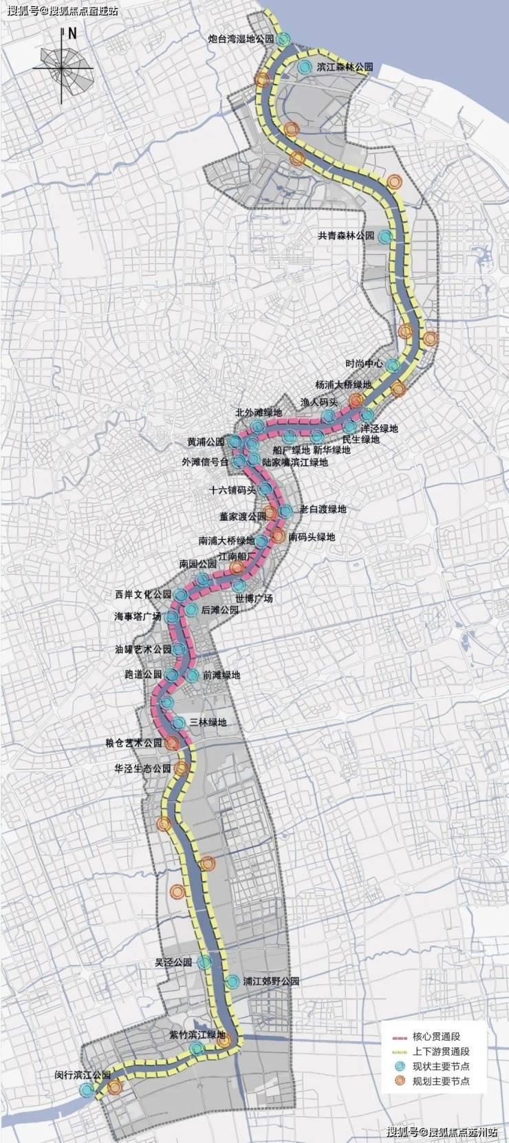 在《黄浦江沿岸发展建设规划(2018-2035)》有明确的规划范围定义:即杨浦大桥至徐浦大桥,总计45公里的两岸岸线,目前已经贯通。