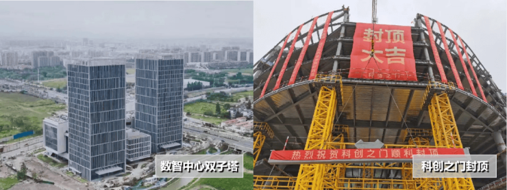 南大智慧城最重要的科创产业新载体“科创之门”也已结构封顶,南大路站旁的首发地块数智中心双子塔已经竣工交付进入运营阶段……