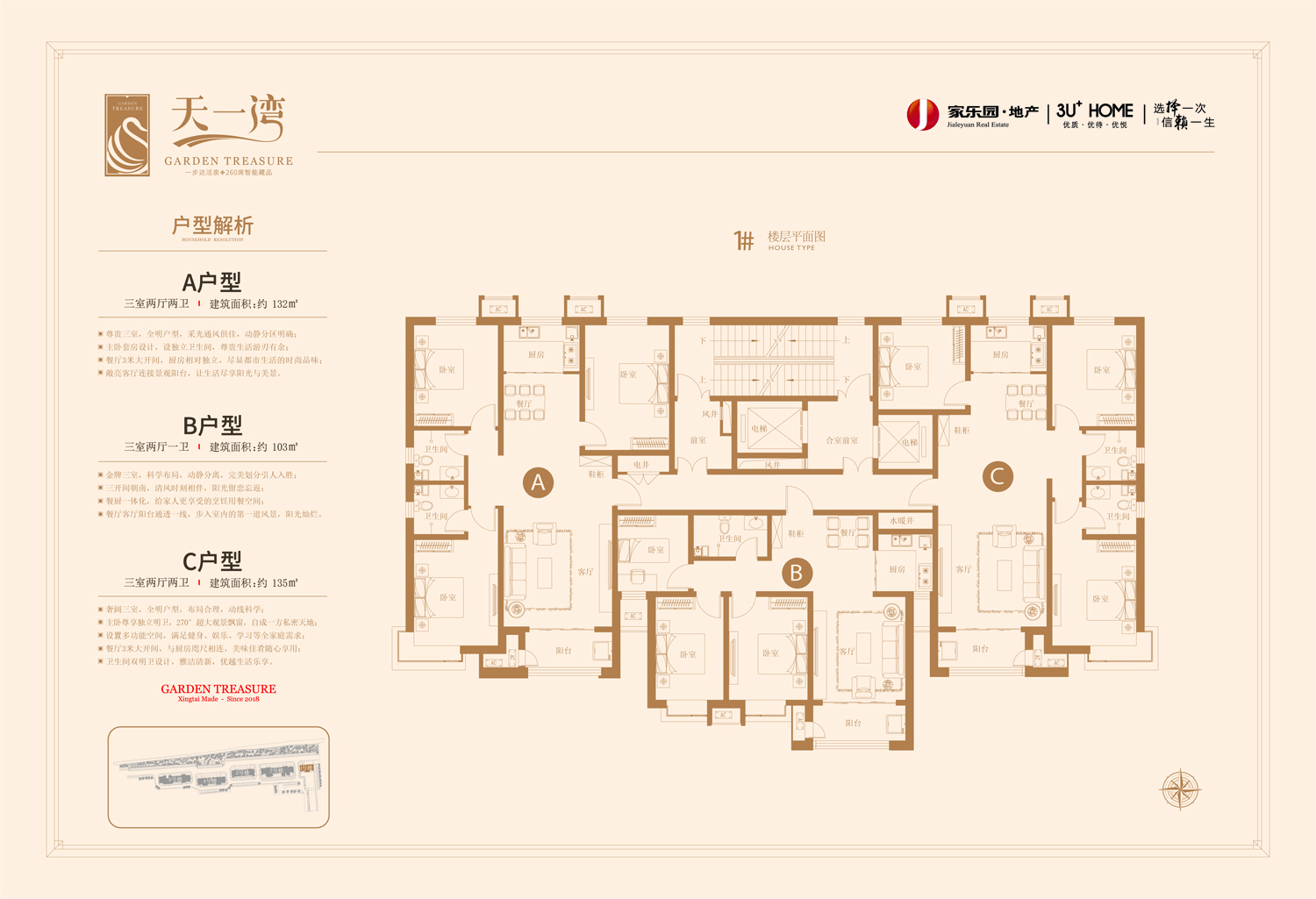 家乐园天一湾项目位于兴达路与泉南大街交叉口北行100米路西,由家乐园地产开发。项目总建面10万平米,规划建设住宅7.7万平米,商业2.3万平米。共包括6栋高层,户型区间95-185平米。