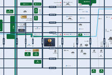 除了两大交通轴线之外,项目100米内,公交站点1个,公交线路26条,一公里范围内,公交站点19个,公交线路56条。出行非常便利。