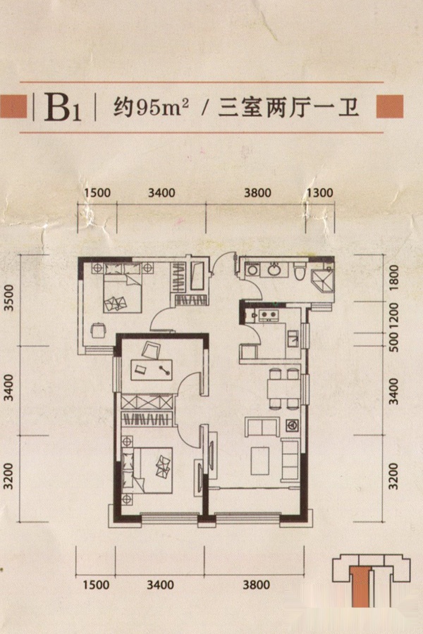 3室2厅1卫-B1户型