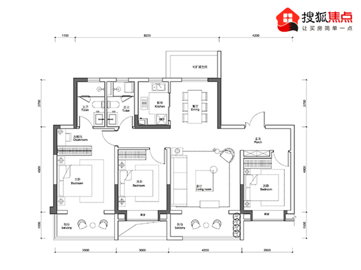 在售 户型方正 客厅朝南 主卧朝南 卧室带阳台 飘窗