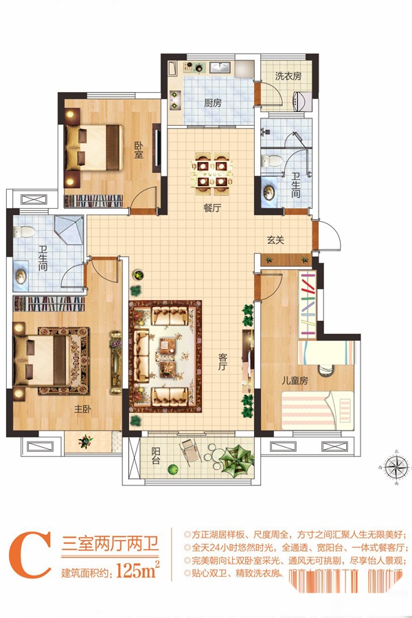 3室2厅2卫-125㎡ 三室两厅两卫